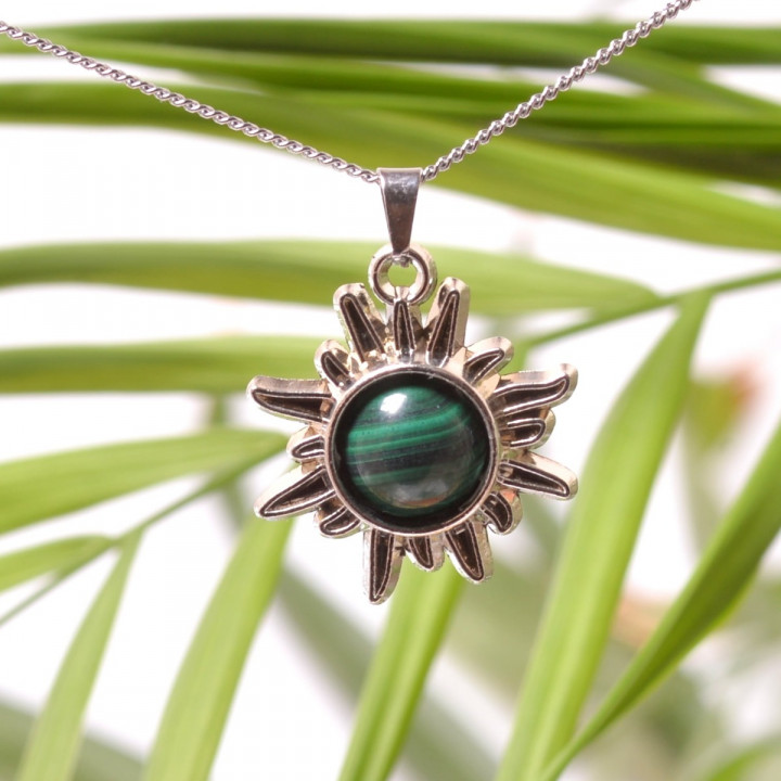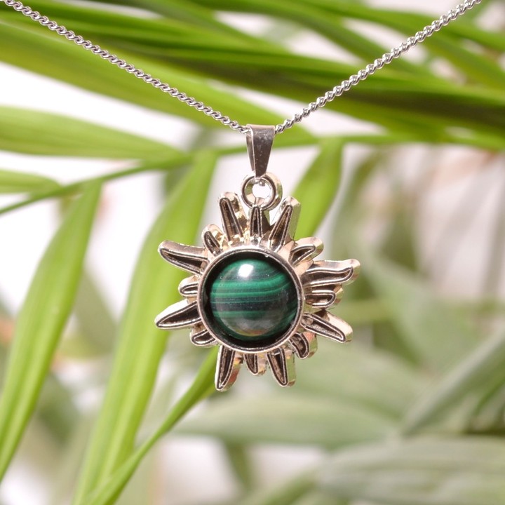 Malahit Taşı Güneş Kolye - Malakit Taşı