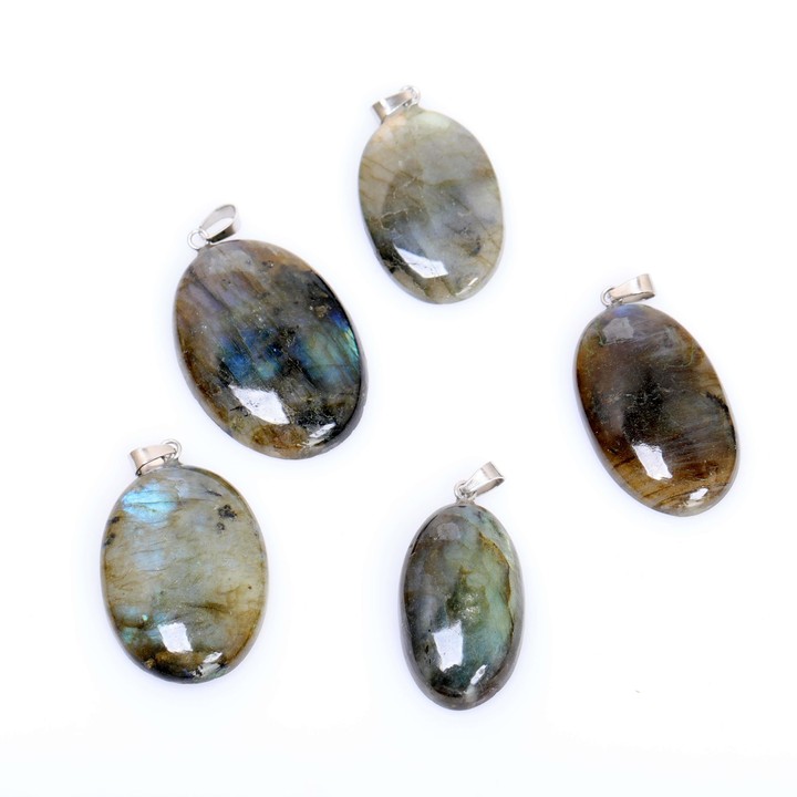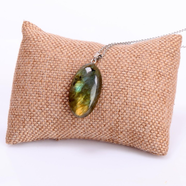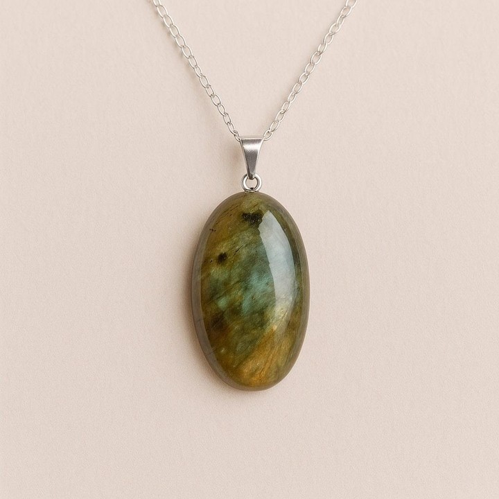 Oval Form Labradorit Taşı Kolye – Çelik Zincirli