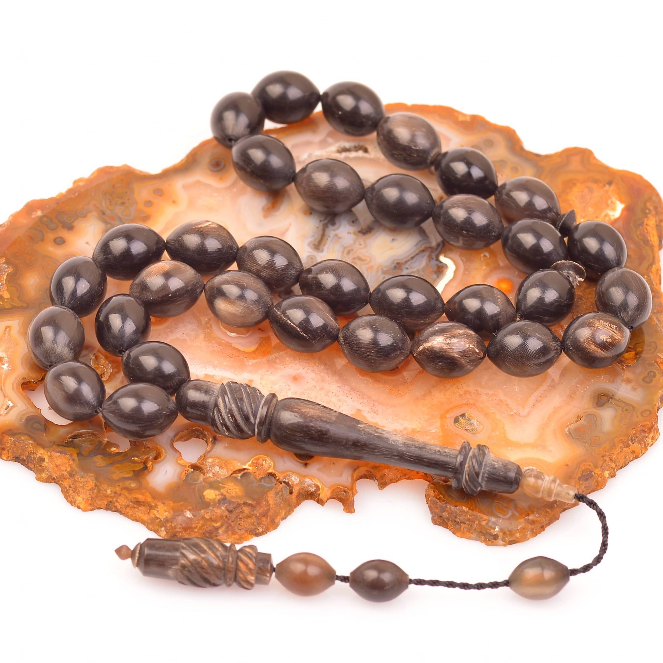Not: Doğal boynuz olduğu için desenlidir, her tesbih birbirninden farklı desenlere sahip olduğu için renk tonları farklılık gösterebilir. Beyaz desenler defo değil ürünün orijinal halidir.