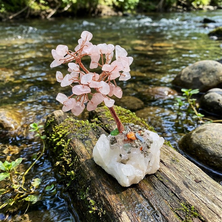 Pembe Kuvars Taşı Ağaç - Kristal Kuvars Tabanlı