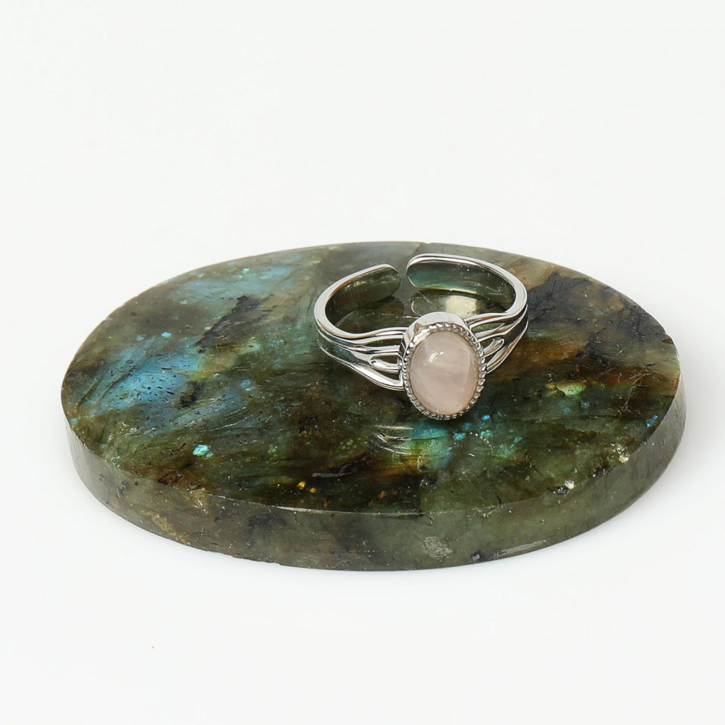 Pembe Kuvars taşının romantik etkisi ve çelik yüzüğün zarif yapısı ile her anınızı içsel sevgi, şefkat duygusu ve huzurla taçlandırın.