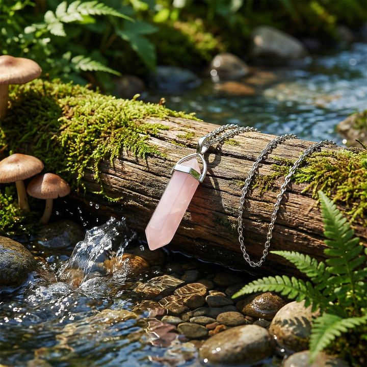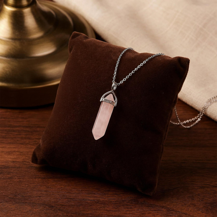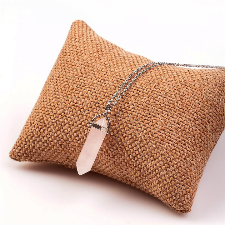 Pembe Kuvars Taşı Kalem Kolye