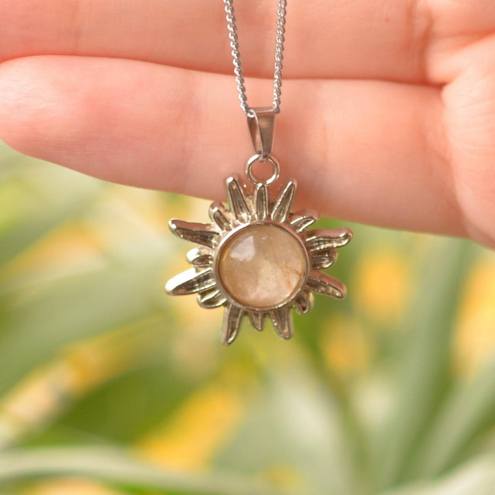 Merhaba. Labradorit taşı olabilir, satıcı sayfamızda güneş kolye yazıp arattığınızda çıkacak kolyelerimize bakabilirsiniz