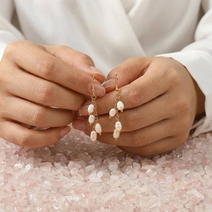 Salkım Model İnci Çelik Küpe, bir araya gelen inci taneleriyle kulağınızda canlı ve seçkin bir görünüm oluşturur.