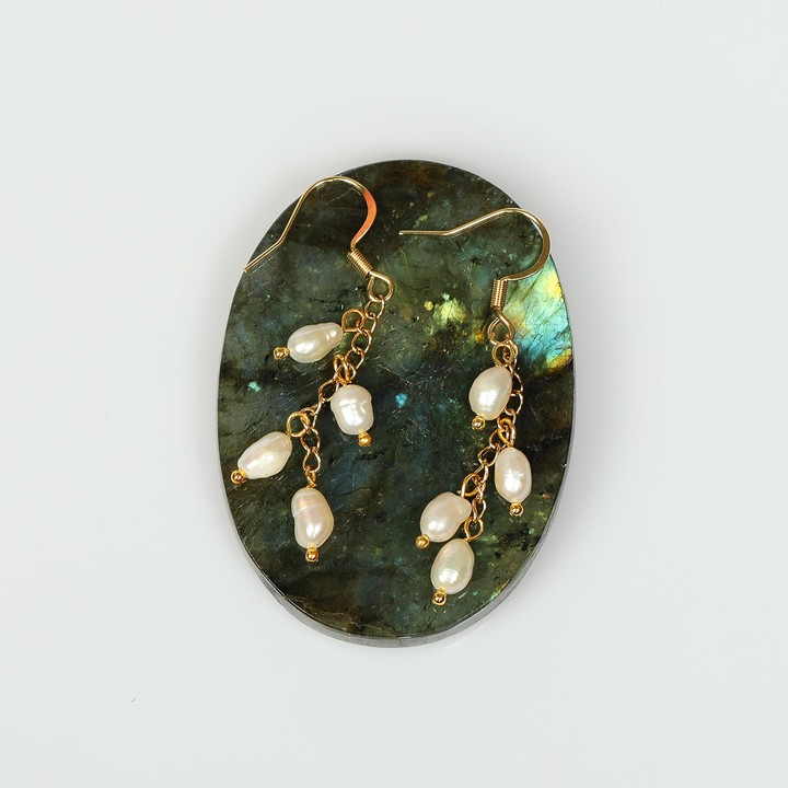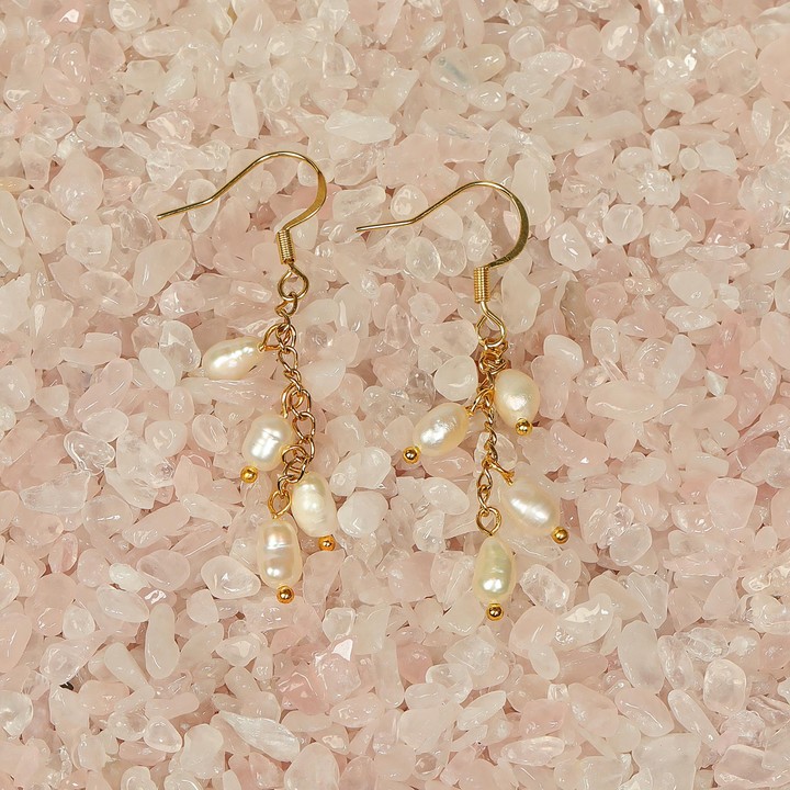 Salkım Model İnci Çelik Küpe – Altın Renkli