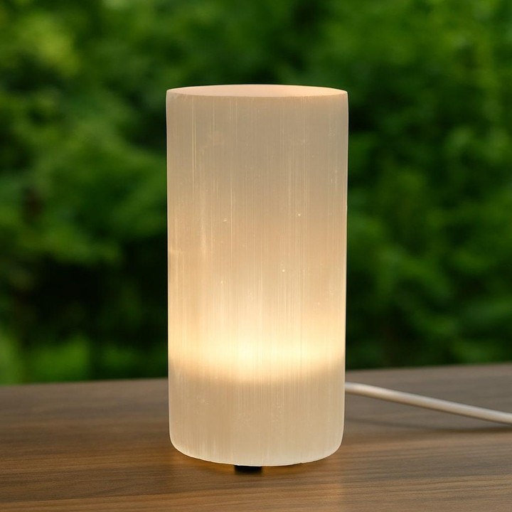 Bu şık ve sade tasarımlı selenit kristal lamba, evinize hem estetik hem de manevi bir değer katacak.