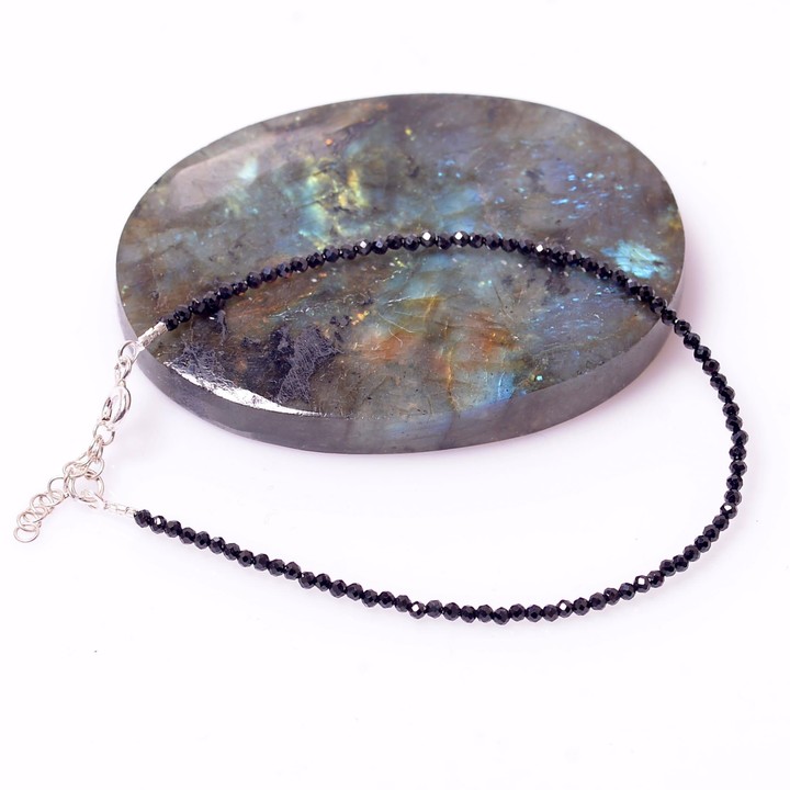 Siyah Spinel Taşı Gümüş Bileklik - 2 mm