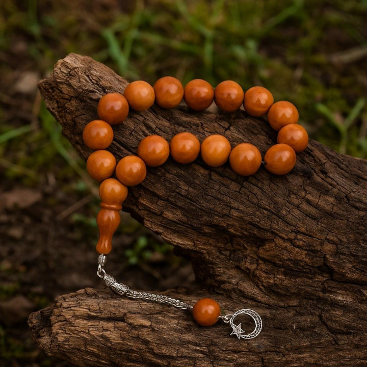 Doğal kuka ağacından elde edilen bu özel tesbih, 16 mm boyutundaki büyük habbeleriyle dikkat çeker. İmameden uzunluğu 18 cm, toplam uzunluğu ise 28 cm’dir. Her biri el işçiliğiyle üretilen bu ürün, doğal yapısı gereği renk tonlarında ufak farklılıklar gösterebilir.