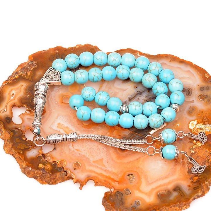 Turkuaz Taşı Tesbih (8 mm) - Pres Turkuaz