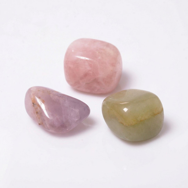 Üç Adet Doğal Taş Kütle - Açık Renkli Ametist - Pembe Kuvars - Aventurin Taşı