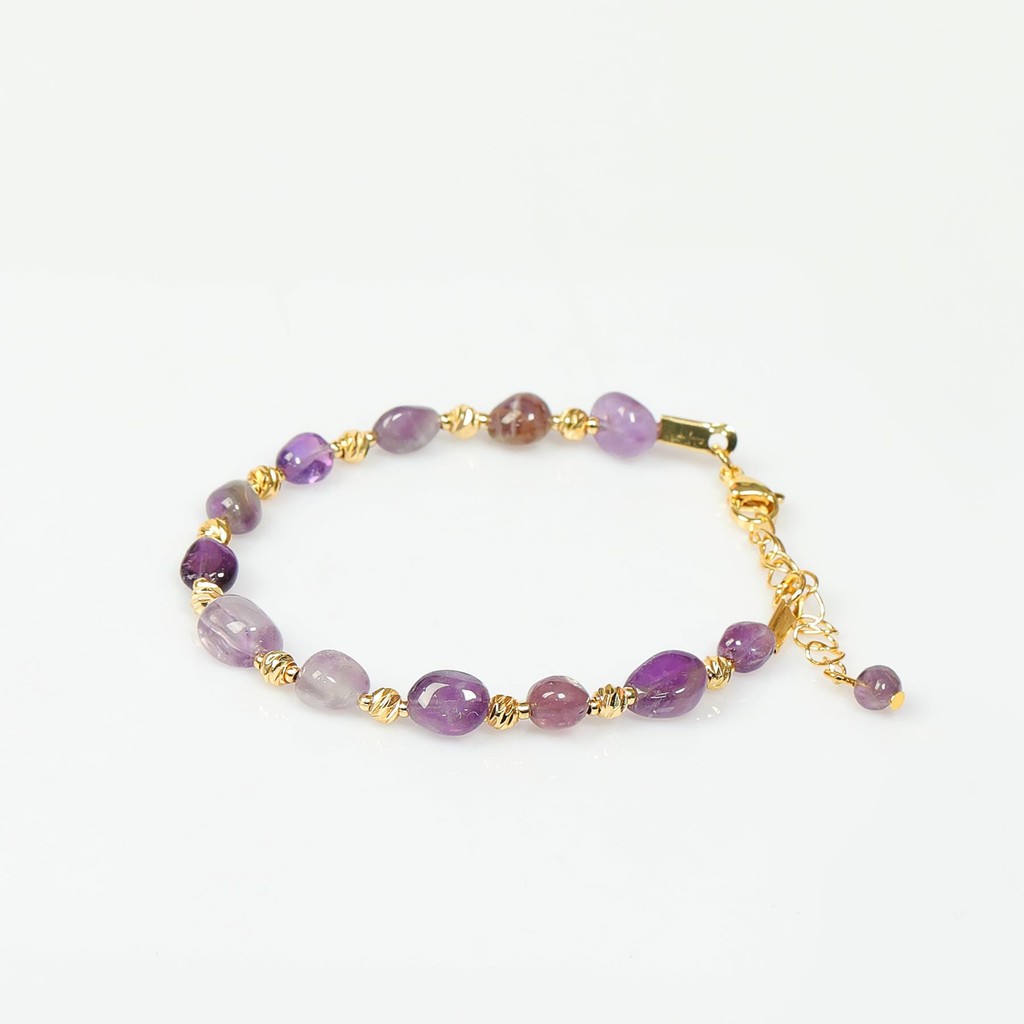Üzüm Model Ametist Bileklik, ardışık dizilmiş taş yapısıyla hareketli ve sofistike bir görünüm sunar.