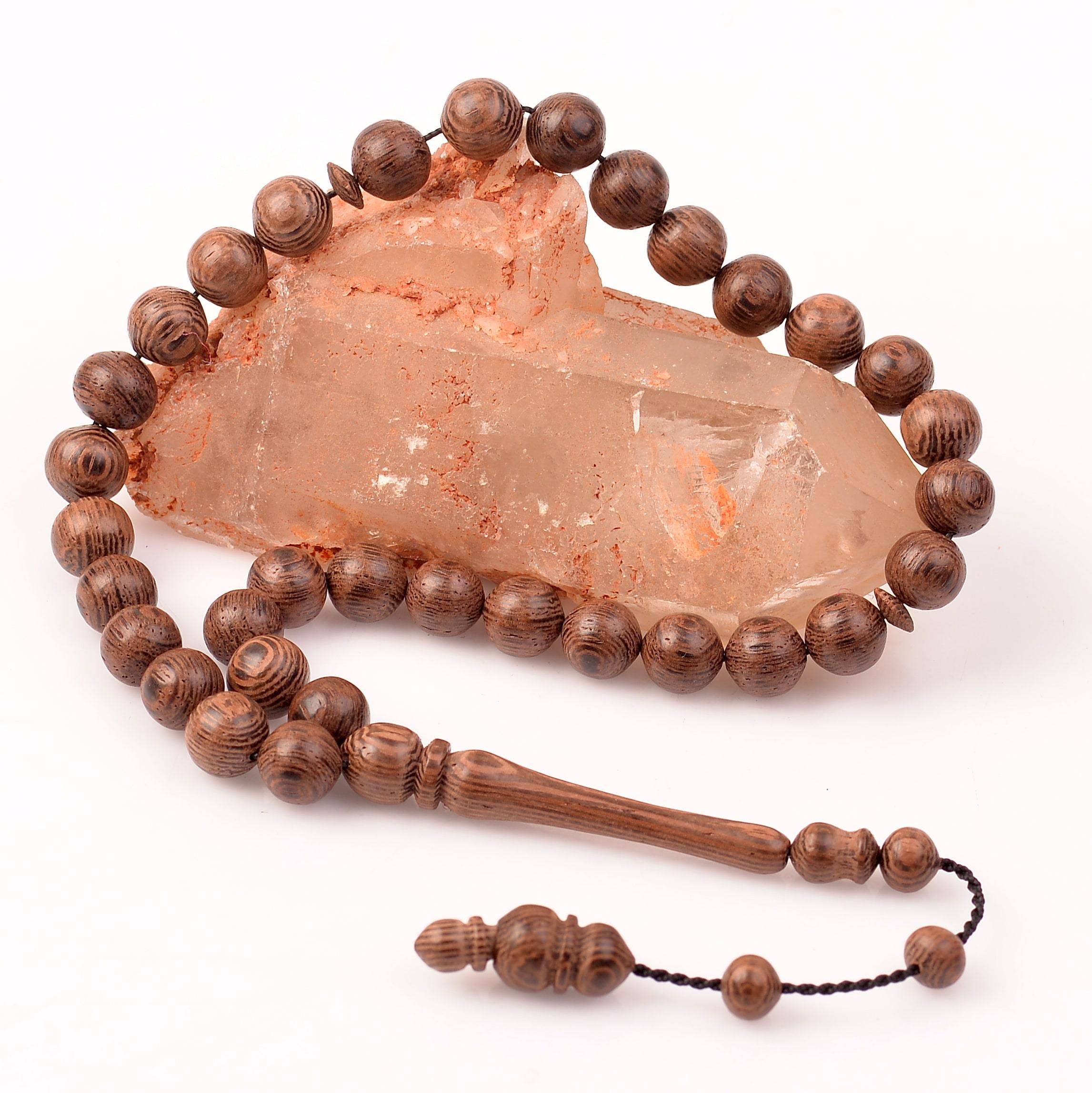 - Estetik Görünüm: Venge ağacının koyu kahverengi ve kırmızımsı tonları, tesbihlerin görsel açıdan zarif ve şık bir hale gelmesini sağlar. Her bir boncuk, doğal damarlar ve desenler ile benzersizdir, bu da her tesbihi özel kılar.