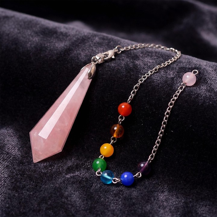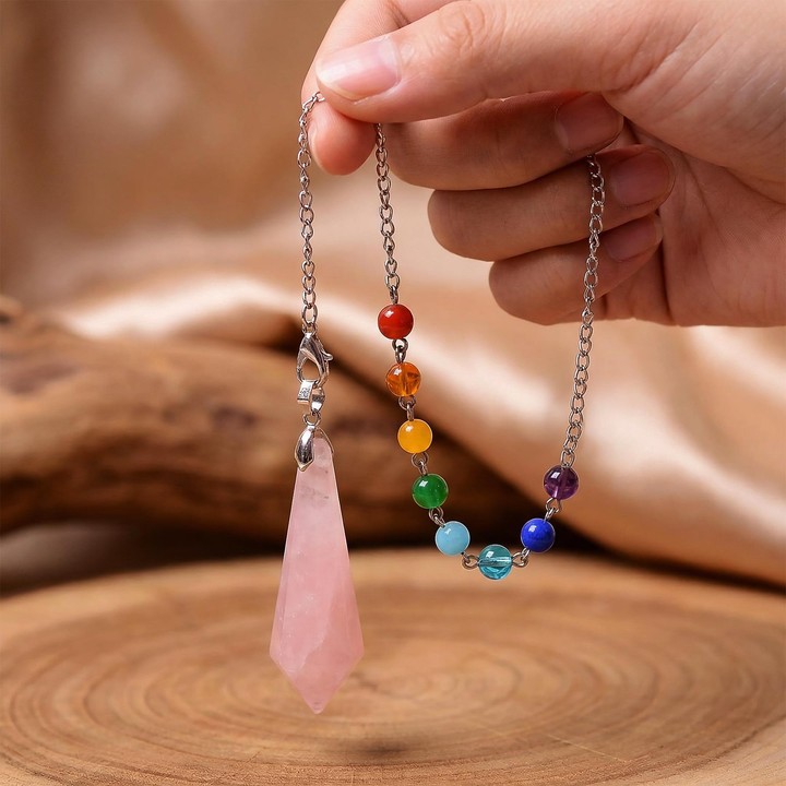 Zincir üzerindeki detaylar süs amaçlıdır. Uç kısmında yer alan pembe kuvars taşı, sevgi ve kalp enerjisiyle ilişkilendirilir. Vogel kesim, enerjiyi belirli bir noktaya yönlendirme amacıyla kullanılan özel bir kesim türü olarak bilinir.