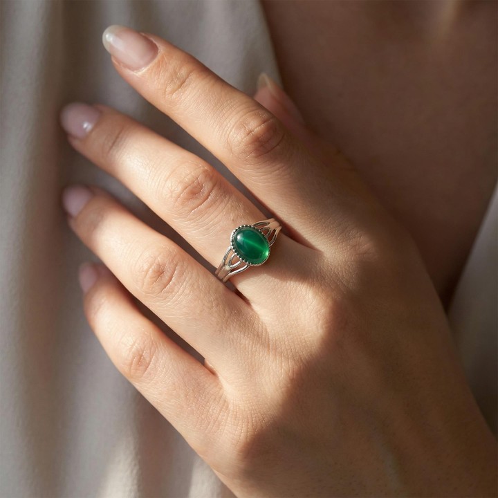 Yeşil Akik, topraklama ve denge arayanlar tarafından sıklıkla tercih edilir. Çelik yüzüğün sade şıklığı ve yeşil tonlarının huzur verici etkisi, günlük hayatınıza hem zarafet hem de sakinlik katacak. Bu yüzük, hem zarif hem de topraklanmış bir stil arayanlar için ideal bir tercihtir.