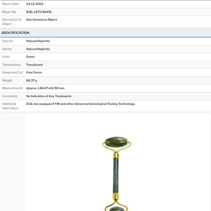 Doğal taşlarda toplu sertifika almak diye bir şey yoktur, Sertifika sadece ürün bazlı alınabilir ve bir ürün için analiz ücreti ortalama 25 usd dir, bir ürün için alınan sertifika diğer ürünler için gerçerli olmayacağından ve doğal taşların satış fiyatı analiz ücretlerinin altında olduğundan sertifikalı doğal taş satışı sadece çok yüksek fiyatlı ürünler için yapılmaktadır. Fotoğrafta görünen sertifika stoğumuzda bulununa yüzlerce yeşim taşı masaj aletinden sadece bir tanesi için alınmıştır, firmamızdaki tüm ürünler beyan edilen ürünlerdir ve dilediğiniz laboratuvara test ettirebilirsiniz.